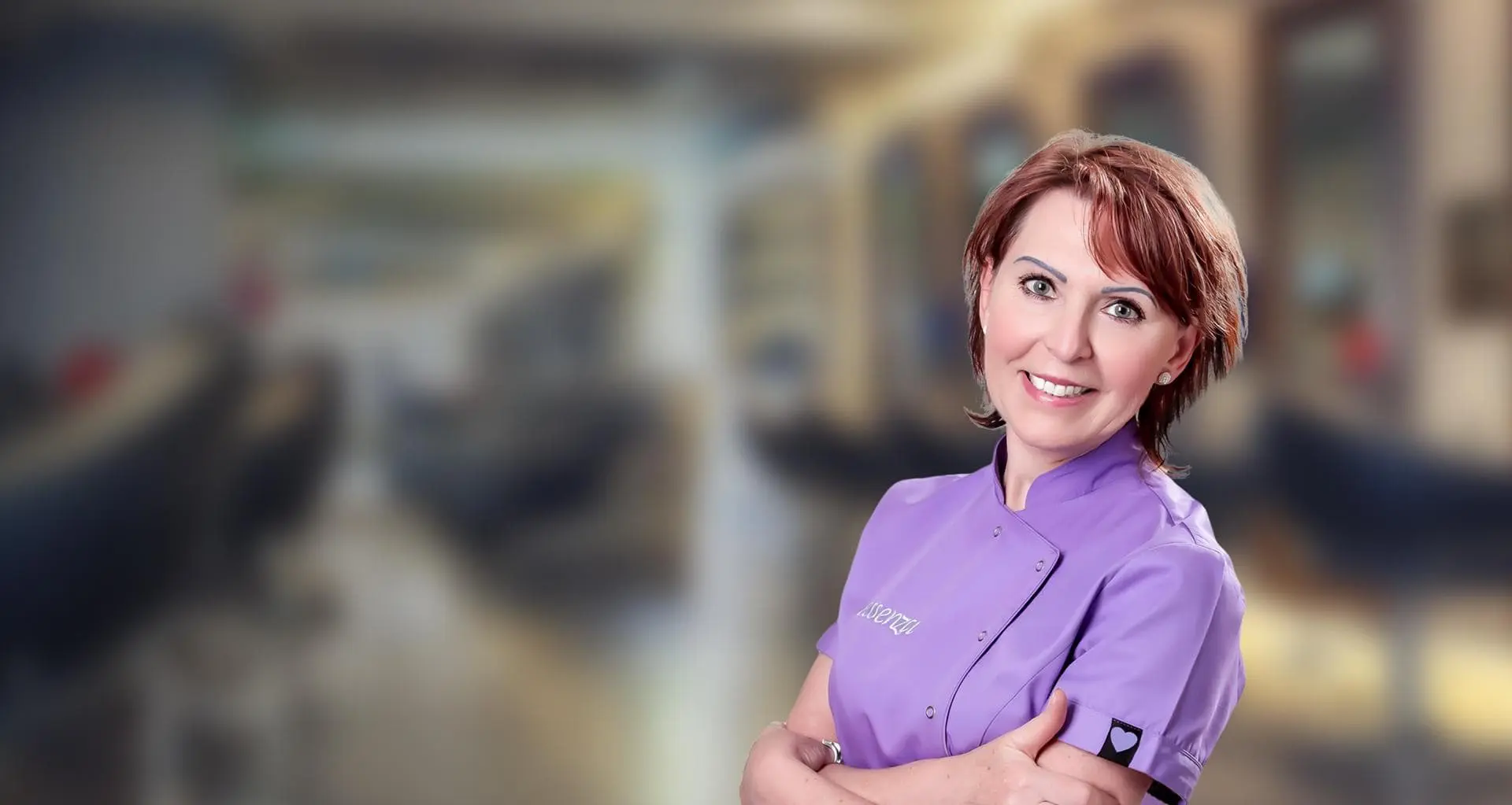 Absolwentka Wyższej Szkoły Kosmetycznej.Specjalista Trycholog z doświadczeniem w diagnozowaniu i leczeniu chorób skóry głowy i włosów.